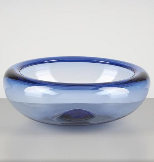 Large Blue Glass Fruit Bowl By Per Lütken for Holmegaard, Denmark 1970s