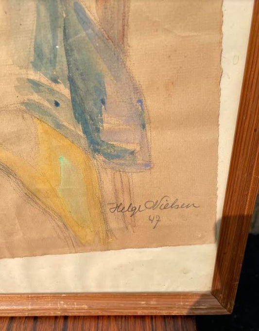 Smukt gammelt Helge Nielsen (1893-1980), akvarel fra 1947 - nr. 08040