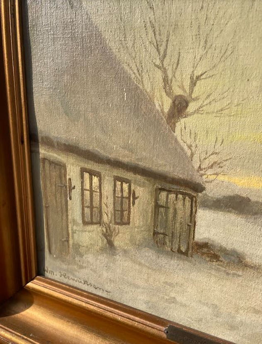 Olie på lærred, Wiliam Henriksen (1880-1964) “Vinteraften bag huset“ - nr. 09018