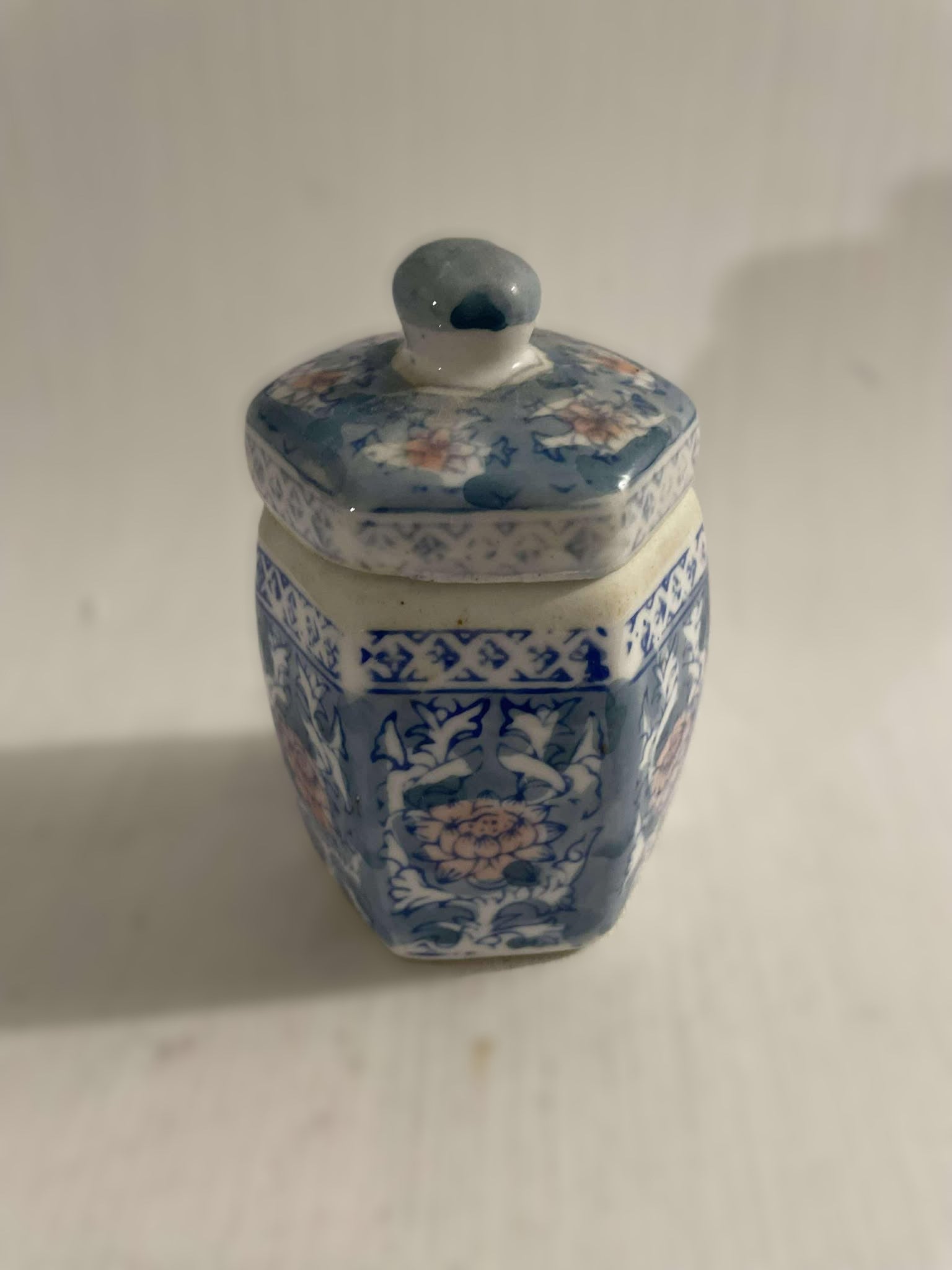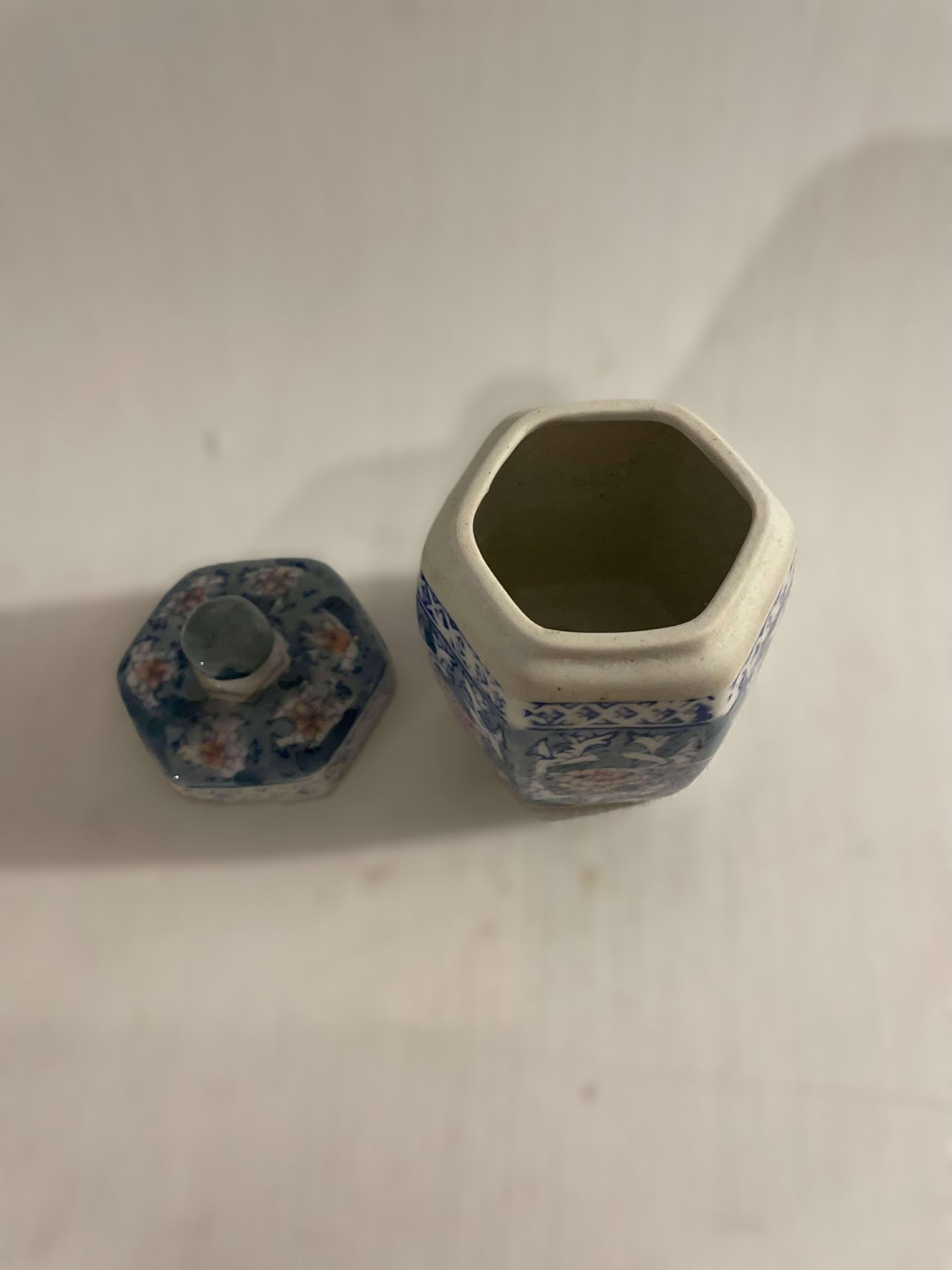 Beautiful Chinese lidded jar in beautiful coral colors.