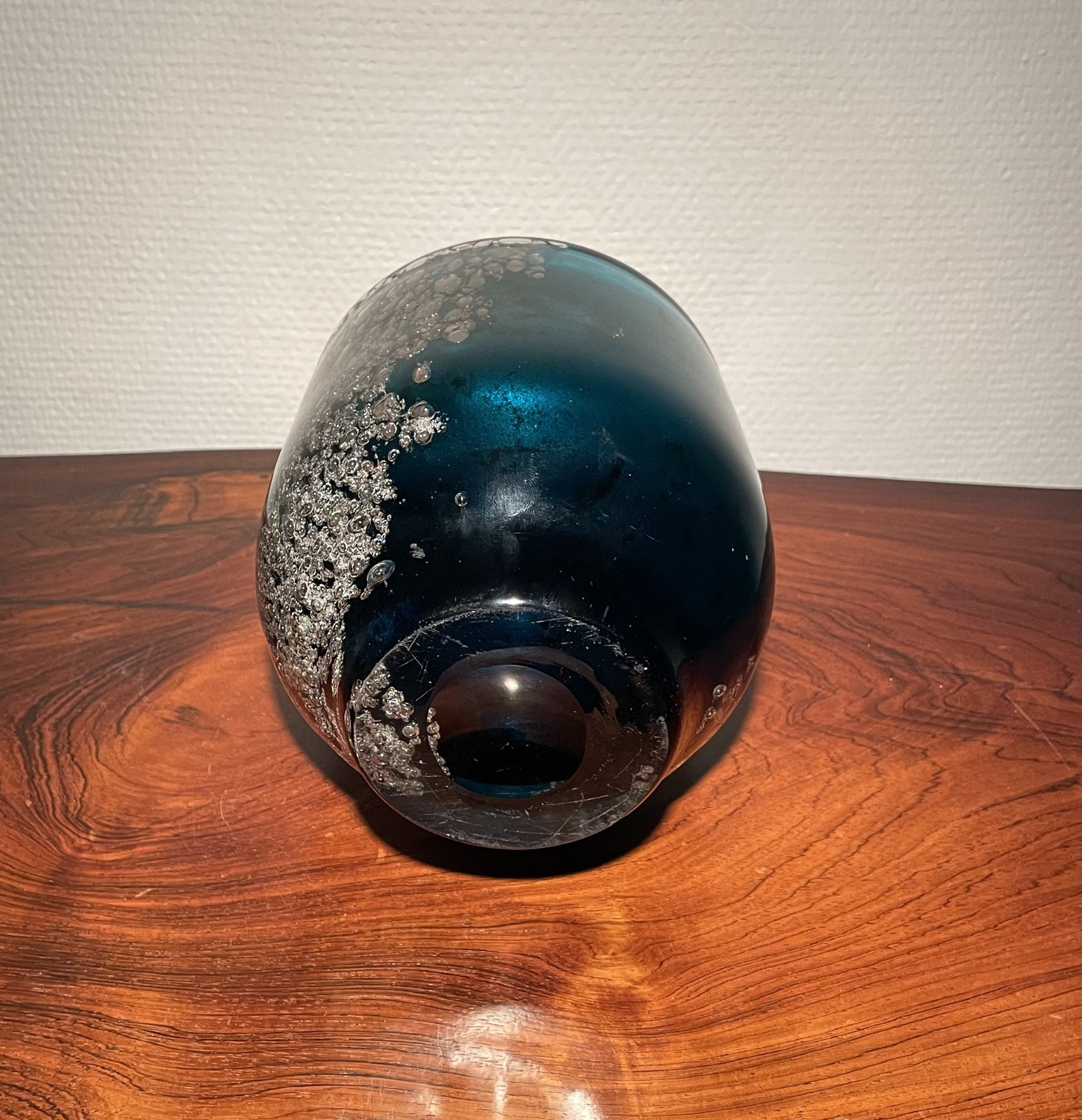 Schott Zwisen デザインの花瓶。酸化銀を使用した青いガラス製。